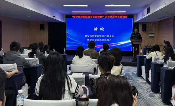 为精准把握数字经济发展浪潮,助力全市企业打通电商运营堵点、加快数字化转型步伐,2026年4月24日,全市“数字化转型驱动下全域营销”企业电商实务培训会在雅州学府花园酒店成功举办。本次培训会由雅安市经济和信息化局、雅安职业技术学院主办,雅安市企业之家、雅安市企业家协会、雅安职业技术学院经济与管理学院承办,全程紧贴企业实际痛点,坚持实战、实用、实效原则,精准打通服务企业发展“最后一公里”。全市80余家企业的负责人、营销总监、电商业务骨干等代表参加本次培训。